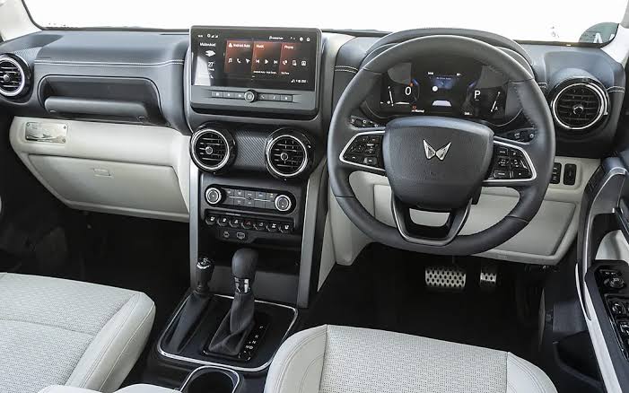 Step inside the Thar Roxx and you’re greeted by a cabin that balances old-school charm with modern luxury. The interior is available in a sophisticated white-black theme, while the 4×4 variants offer an exclusive brown-black option. The seats are ventilated for added comfort, and the driver enjoys a powered, height-adjustable seat. The dashboard is dominated by a 10.25-inch touchscreen infotainment system, paired with a premium 9-speaker Harman Kardon audio setup for an immersive experience. Other highlights include automatic climate control, an air purifier, digital instrument cluster, and keyless entry for added convenience