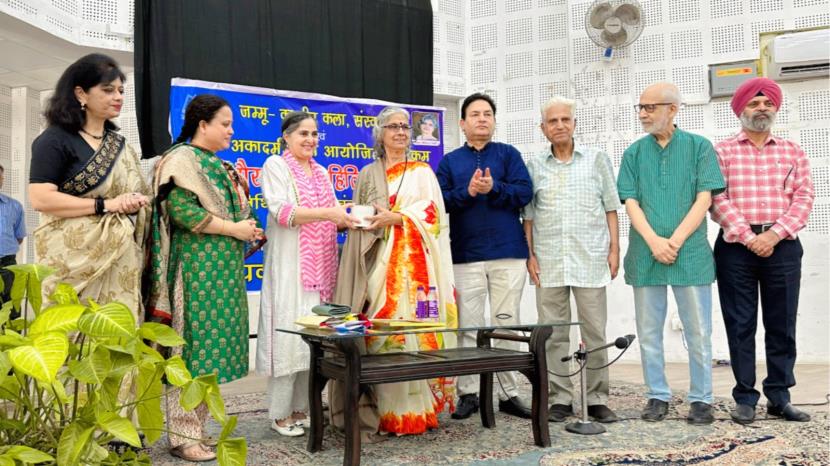 She also felicitated Dr. Dogra with a shawl, memento, and flower vase, in the gracious presence of Sonali Arun Gupta, Additional Secretary, JKAACL; Dr. Javaid Rahi, Divisional Head Jammu; and senior literary figures Prof. P.N. Trisal, Dr. R.L. Shant, and Dr. A.S. Amn, former Additional Secretary, JKAACL.